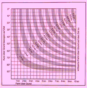 Fahrt über Grund mal cosinus (Winkel zum Ziel)