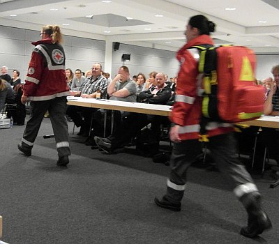 Notarztmannschaft in den Saal eilte. Aber es war keine gestellte Szene, ein