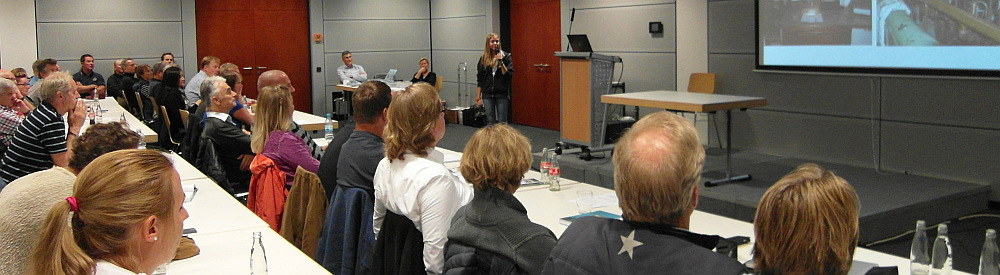 Universitätsprofessor Dr.Herwig Paretzke, Strahlenphysiker, erzählte dem staunenden Publikum, wie er es geschafft hatte, Lehrstuhl und Weltumsegeln unter einen Hut zu bringen und dabei in einem 15-Meter-Katamaran mit wechselnder Crew um die Welt zu segeln. Insgesamt vierzig Freunde wechselten sich auf den einzelnen Etappen ab. Seine Feststellung, dass mehr als eine Ehefrau an Bord nicht gerade stimmungsfördernd sei, erzeugte im Publikum verständnisvolles Gemurmel, aber auch ein paar Zornesfalten auf den Gesichtern einiger weiblicher Zuhörern. Letztlich aber überwog die große Bewunderung für die Segelleistung des über siebzig Jährigen, der, das erfuhren die Seminaristen so nebenbei, mit seinem