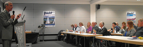 kommen, wenn er, was sicher häufig vorkommt, finanziell nicht in der Lage ist, die Traumyacht mal so eben beim Händler zu bezahlen. Wie sehr der Referent anschließend von auskunftshungrigen Teilnehmern umlagert war, zeigte deutlich, dass Hans mit seinem Thema voll ins Schwarze getroffen hatte. Denn die vorangegangene Umfrage zeigte, dass mehr als die Hälfte der Teilnehmer noch vor der Anschaffung einer Yacht steht.