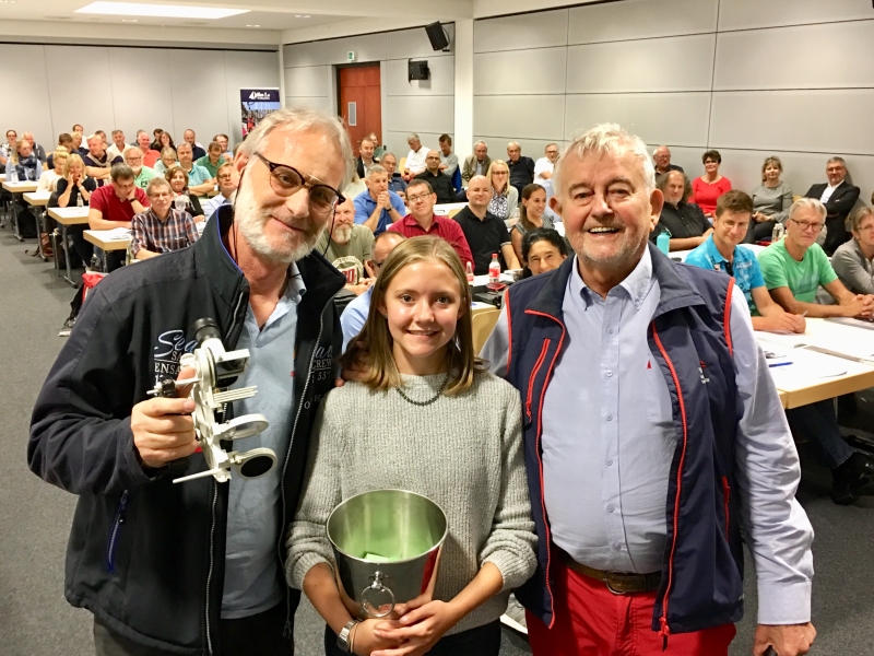 Ein besonderes Schmankerl war, sozusagen als Belohnung für das aufmerksame Zuhören, eine Verlosung unter den Teilnehmern von Büchern B.Schenk´s sowie der demonstrierten Rettungsmittel – gestiftet vom großen maritimen Online-Shop SVB und vom Rettungswestenhersteller Kadematik. Als Highlight hatte die renommierte Sextantherstellerin Cassens und Plath einen "Bobby-Schenk-Sextanten" im Wert von annähernd 2000 Euros zur Verfügung gestellt: Weltumseglerin Luca zog das letzte Los. Es traf den glücklichen Schweizer Blauwassersegler Beat Zehnder.
