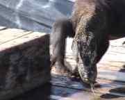 Varanusrex seinen Bruder sicher fünf Meter über den Steg ins Wasser. So war