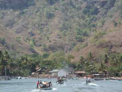 Hafenkapitän nach Bima fuhren wir mit einem Fischer. Am Steg warteten Dutzende