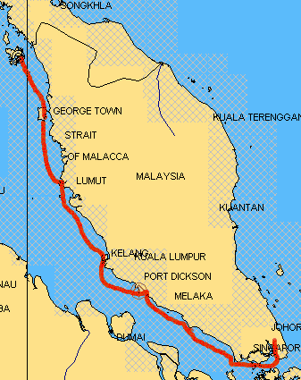 gleichzeitig durch die Straße von Malacca, die einen bodenlosen Ruf genießt