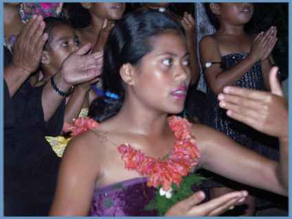 wunderschönen Lieder der Polynesier aus der Kirche über die große Bucht. Man