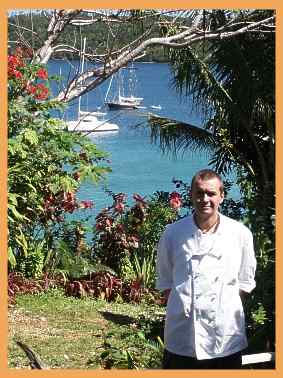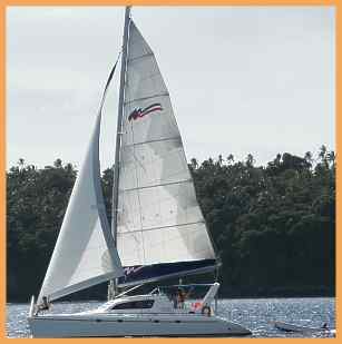 uns lag ein Charterkatamaran. Bei Bernie, während des Abendessens, lernten wir