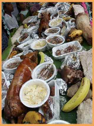 gezählt. Nicht gerechnet, die Schweine, die im Umo, dem Erdofen zubereitet und