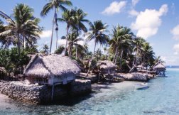 einer Kette von Motus, einem traditionellen Dorf, vielen Fischen, Langusten auf