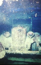 langen Frachter, gebaut in den Zwanzigern. Unsere tiefste Tauchtiefe dort war 56