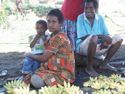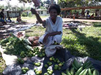 verlangt für fünf Lemonen 100 Toea, einen Kina (25 Cent). Als wir drei