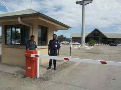 nebst Wachmannhäuschen an den beiden Straßeneinfahrten nach Port Moresby. Wie