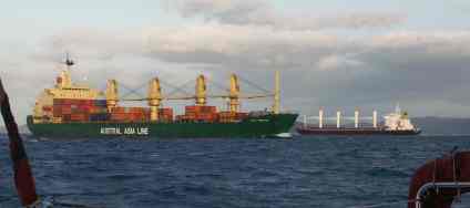 der Prince of Wales Entrance. Einen entgegenkommenden Stückgut-Frachter preite