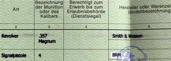 die zu erteilende Waffenbesitzkarte werden dann die entsprechenden Waffen eingetragen.