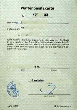 Waffenbesitzkarte. Sie wird in Deutschland von den Kreisverwaltungsbehörden