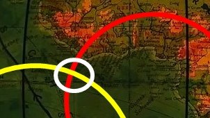 Der Vergleich mit einem Leuchtfeuer entspricht genau dem Prinzip der Astronavigation. Das erste Gestirn ergibt einen Standkreis, also einen Kreis (gelbe Linie) mit einer Entfernung zum Gestirn = Radius (blaue Linie), auf dem das Gestirn sekundengenau aufliegt. Erst wenn eine zweite Messung hinzukommt, gibt es einen Schnittpunkt und damit einen exakten Schiffsort!