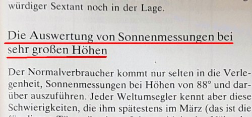 hohen Gestirns-Höhen zurecht zu kommen. Das ist schlicht falsch. Eine Anweisung nach Eric Hiscock finden Sie im älteren Buch YACHT-NAVIGATION von Delius Klasing: