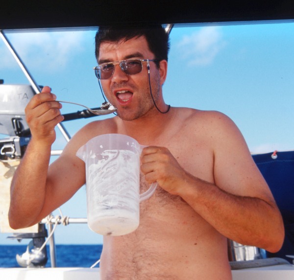Wir genossen es, nicht allzu schnell zu sein, so hatten wir etwas mehr von diesem wundervollen Passattörn. Die Küche, fast das Wichtigste für das Wohlergehen an Bord, war perfekt, schließlich waren unsere Backskisten mit den gleichen Vorräten gefüllt, die wir auch zu Hause hatten, und die irren Preise waren längst vergessen, schließlich lebten wir an Bord umsonst. Auch beim besten Willen lässt sich an Bord einer Yacht auf hoher See kein Geld ausgeben. Unsere Obstvorräte wurden sichtbar weniger, das Netz, das quer durch die Kajüte wie eine Hängematte gespannt war, schaukelte mit seinen Limonen im Rhythmus des Seegangs. Limonen wurden am meisten verbraucht, und zwar zum täglichen Sundowner. Wer diesen Brauch nicht kennt, dem empfehle ich ihn zum Nachmachen.