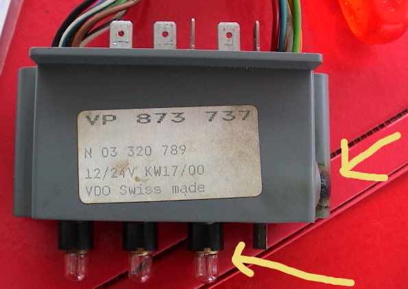Zeit verschmorte als Folge davon die Fassung des kleinen Birnchens aus der Alarmanzeige -