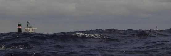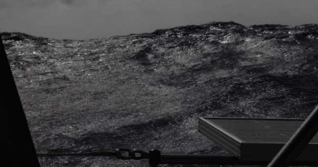 30m hohen Aufbauten ist das Schiff in den Wellentälern kaum zu sehen.