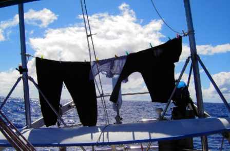 kurze Trockenwäsche. Gerade sehe ich ein Schiff hinter mir am Horizont