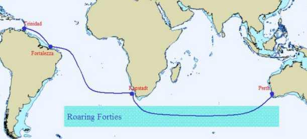 rund “Cape Hope” und durch die “Roaring Forties “ einigermaßen