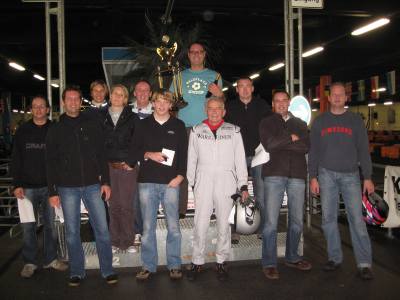 Messemitarbeiter einmal auf dem Rennkurs der Hamburger Kartbahn Einsath. Wer der