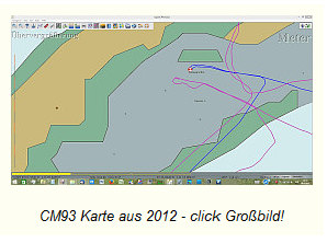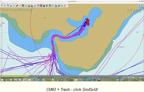 Wie das nachfolgende Beispiel zeigt, sollte man den Tracks nicht in jedem Falle blind folgen. Vielleicht sind diese Spuren von Schiffen mit wenig Tiefgang, vielleicht hatten sie Flut und ruhiges, sonniges Wetter. Wir wissen es nicht und die Umtände, wie diese Linien zustande
