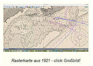 Die beiden Schiffe, welche uns die pink farbigen Tracks oder Spuren hinterlassen haben, können nur über die "modernsten" Karten, ohne all die wichtigen Details der digitalisierten Papierkarte aus dem Jahre 1921, verfügt haben. Da blieb den Kapitänen nichts anderes übrig, als die Inseln zu umfahren, oder das Risiko auf sich zu nehmen, irgendwo "per Sicht" in die Bucht hinein zu navigieren. Beide hatten das Risiko gewählt und sie navigierten direkt über das Riff, was bei Flut und schönem, ruhigen Wetter noch gut gehen mag. Uns wäre das Risiko der Einfahrt ohne die Rasterkarte ausserhalb der Toleranzgrenze gelegen, wir hätte die Insel links liegen gelassen und wären vorbei