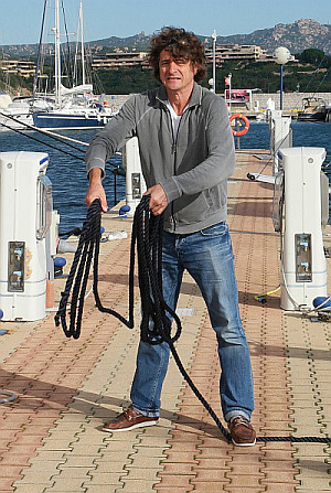 links zeigt. Obige Helferin auf der Pier ist sicher eine unrühmliche Ausnahme, mit der man eigentlich nicht zu rechnen braucht. Eher sind Marineros zu beflissen, ja übernehmen gelegentlich selbst das Anlegemanöver in Form von lauten Kommandos. Das sollte man sich als Skipper nicht gefallen lassen, zumal man so vor seiner Crew allzu leicht blamiert würde. Ganz schlimm ist es, wenn ein Crewmitglied einen Befehl aus dem Munde eines Marineros ausführt. Nur Anweisungen des Skippers gelten. Man verbeiße sich auch Vorschläge an den Skipper, der hat beim Anlegen unter schwierigen Bedingungen genug mit sich selbst und seinem(!) Manöver zu tun. Will man bei einem Anlegemanöver, bei dem es auf das richtige Leinenbedienen ankommt, auf Nummer Sicher gehen, kann man vor dem Anlegen einen geübten Mann mit dem Beiboot an der Pier absetzen.