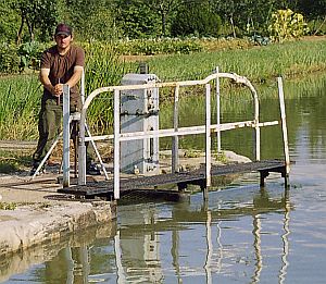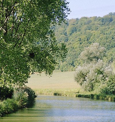 Irgendwann ließ dann auch der Schiffsverkehr nach, die Windungen der Maas wurden enger und die Fahrt wieder beschaulich. An einem späten Nachmittag erreichten wir dann die französische Grenze, wo uns von einem netten Mitarbeiter der Kanalbehörde eine Fernbedienung für die automatischen Schleusen übergeben wurde. An diesem Abend machten wir vor der ersten typischen kleinen französischen Schleuse fest, da es schon zu spät und die Automatik abgeschaltet war.