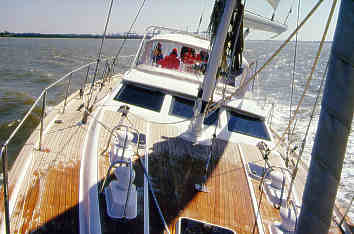 Kurzum, wir verabschiedeten uns von dem Gedanken, eine Second-Hand-Yacht zu kaufen, eine neue sollte her. Das Budget sollte dies zulassen, so dachten wir, wenn wir in der Größenordnung bei 50 Fuß blieben und nicht gerade mit den als besonders teuer geltenden nordischen Yachten (Schweden, Dänemark, Finnland) liebäugeln würden, die ohnehin nicht so nach unserem Geschmack waren. Wie gesagt, Teakdeck betrachte ich heute(!) als irgendetwas Verlogenes. Also startete die Suche von Neuem. Es durfte ruhig etwas Gediegeneres sein, altmodisch, langkielig oder so. Auf eine amerikanische Werft wies mich ein Leser hin. Meine schüchterne Anfrage nach einem Prospekt bekam keine Antwort. Und überhaupt Übersee? Schließlich mußte die neue Yacht eine CE-Zertifizierung haben. Zwar wollten Carla und ich zunächst mal nicht in Europa segeln, aber irgendwann wollen wir ja zurückkommen können und dann nicht wegen fehlendem CE-Zeichen des Landes Europa verwiesen werden.