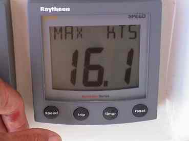 Bestmarke auf der Geschwindigkeitsanzeige: 16,1 Knoten.