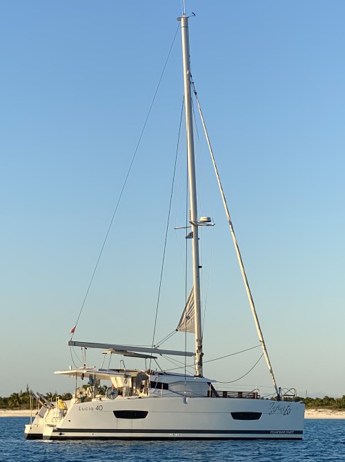 Das heißt, an ein Schleifen mit dem Schwingschleifer oder ähnlichem war gar nicht zu denken, denn die zwei Stunden, wo das Schiff trocken war, reichten gerade, um das Unterwasserschiff ein wenig mit Seewasser sauber zu putzen und Farbe drauf zu schmieren. Bei einem Katamaran wie dem Ihrigen wäre das erst recht nicht zu schaffen! Ein spottbilliges Antifouling bekamen wir mitleidig von dem ortsansässigen Fischer.