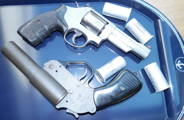Eine einzige Schusswaffe kann ich Ihnen nahelegen. Nein, es ist nicht die in diesem Zusammenhang öfters empfohlene, naturgemäß großkalibrige (deshalb auch tödliche) Signalpistole, sondern eine Schreckschuss-Pistole, wenn sie nicht von offizieller Seite als "firearm" angesehen wird (so wie in vielen Ländern). Den Tipp hab ich von einem amerikanischen Yachtsmann, der von seinem Besuch in dem genannten Venezuela berichtet hat: