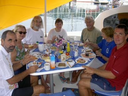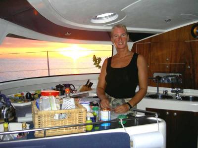 4 Solarpanele je 50 Watt im Edelstahlrahmen über Davits montiert