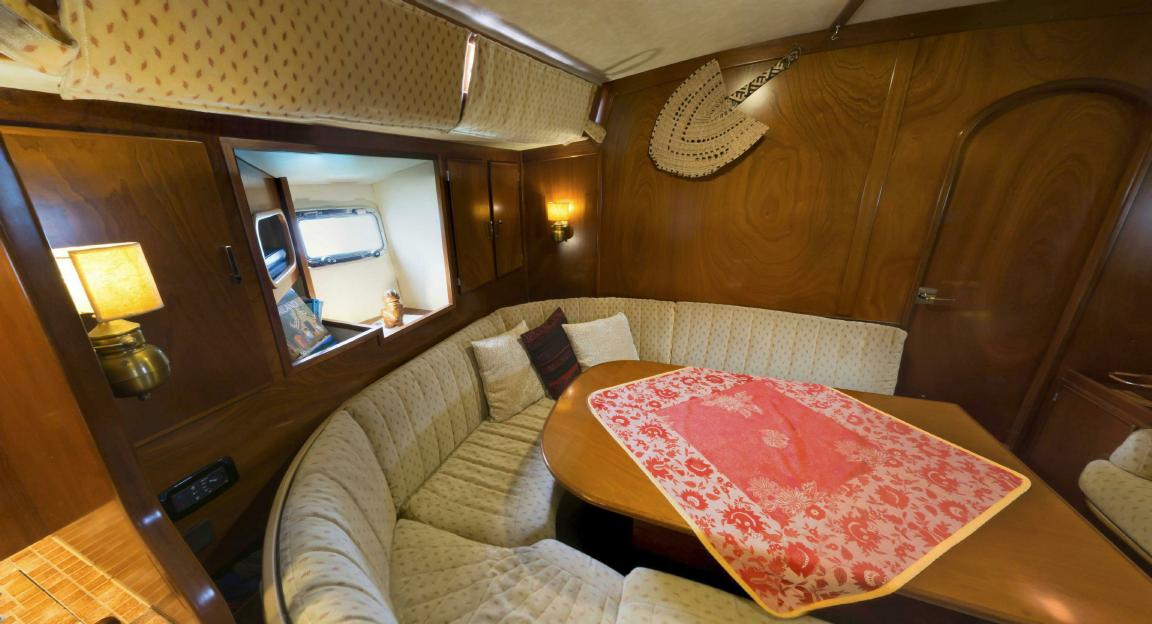 Verarbeitung. Es ist eines der wenigen Schiffe mit wasserdichten Schotts und das Schiff kann, dank der elektrischen Hilfsmittel (Genua, Gross + Winschen) leicht von einer Person gesegelt und manövriert werden. Etmale von über 200 SM sind bei idealem Wetter ohne Probleme erreichbar. Das Schiff ist leicht zu unterhalten und Mechaniker oder Handwerker für Reparaturen hat unser Schiff nicht gesehen, d.h. wenn man nicht zwei linke Hände hat, sind die Kosten für den Unterhalt leicht tragbar (die wenigen Unterhaltsarbeiten, welche wir nicht selbst erledigen sind schnell aufgezählt: Arbeiten an den Segeln und Wechseln des Zahnriemens am Motor). Nathalie und ich (siehe Foto) haben auf unserer Reise kein Schiff gesehen, bei welchem all die Technik so leicht zugänglich ist, wie bei der Super Maramu.