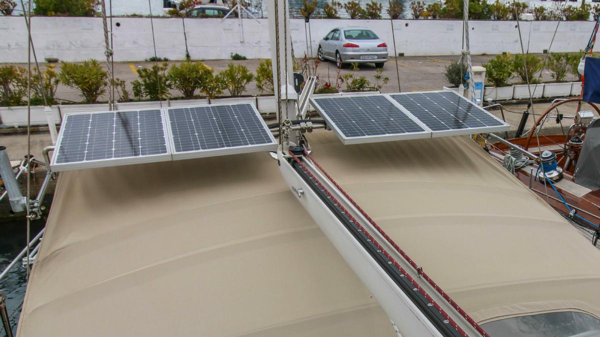 5)Energie: Das größte Problem auf Langfahrtyachten, weit entfernt von der Steckdose an Land, ist der Energiehaushalt. Das haben wir so gelöst, wir haben sogar überschüssige Energie, dank einer 420 Watt Solaranlage mit MPPT-Kontroller eingebaut (2 x 90 und 4 x 60 Watt Paneel). Zudem ist ein Windgenerator mit max.16 Amp Leistung vorhanden, so sind wir völlig autark unterwegs, auch auf den entferntesten Ankerplätzen rund um die Welt. Nur so ist man frei! Man will ja nicht mangels Energie den Stress auf sich nehmen, die schönsten Ankerplätze zu verlassen, um irgendwo Diesel oder Wasser bunkern zu müssen. Wer schon mal ein paar hundert Liter Diesel oder Wasser per Beiboot und Kanister mangels einer Tankstelle am Ankerplatz aufs Schiff bringen hat müssen, weiß, wovon ich spreche. Diese zwei Systeme liefern Tag und Nacht genügend Strom, um das Schiff zu betreiben und die Batterien zu laden.