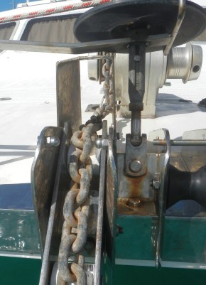 Die Ankerwippe ist wieder eingebaut. Die Kette läuft sauber und problemlos darüber.