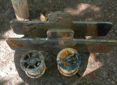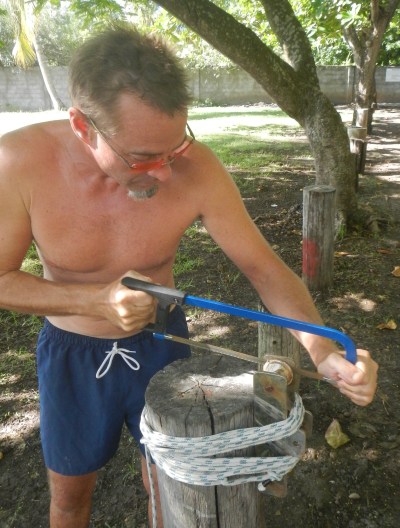 Bei unserer Ankerwippe liefen die Rollen über in die Wippe eingeschweißte Stahlstifte und so mussten wir diese erst heraus sägen und die Stifte durch Gewindehülsen ersetzen. In den meisten Fällen sind die Stifte verschraubt und können zum Rollenwechsel recht einfach herausgenommen werden.Nach einigem Sägen hatten wir die alten Rollen draußen.