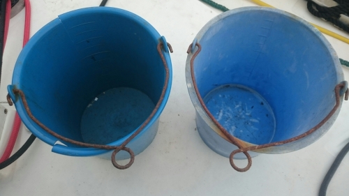 auf einem Schiff. Wir hatten im Schiffsladen zwei dieser Kübel gekauft,