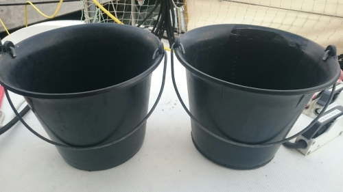 Ersatz haben wir deshalb seit acht Monaten preiswerte Mörteleimer vom Baumarkt. Sie