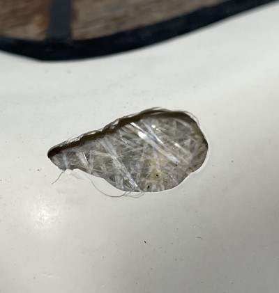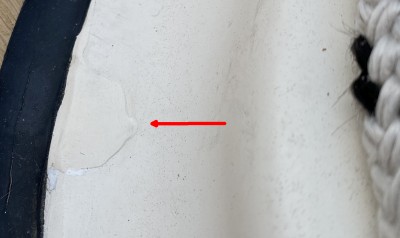 Hier nun einige Ergebnisse. Diese Stellen waren zuvor jahrzehntelang abgeplatzter Gelcoat, unter dem die Glasfasermatten sichtbar waren. Laut Experten platzt das Gelcoat bei zu dicker Beschichtung auf, was nicht nur bei unserem Boot sondern der ganzen Baureihe auftrat. Der kleine Riss ist nachbesserungswürdig, da müssen wir noch einmal ran!