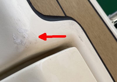 Am Ende unseres Refits sollten endlich auch die Gelcoat-Schäden der letzten 27 Jahre ausgebessert werden.