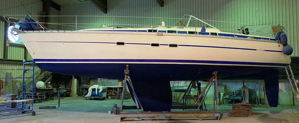Jeder Eigner einer älteren Kunststoffyacht findet mit der Zeit immer mehr kleine Schäden am Kunststoff, die zwar nicht die Funktionstüchtigkeit des Bootes beeinträchtigen, aber hässlich und nicht gerade eine Visitenkarte für das Schiff sind, speziell im Hinblick auf einen Weiterverkauf. Der erfahrene Fahrtensegler Pit Förster hat es sich zur Aufgabe gemacht, seiner Yacht nach fast dreißig Jahren wieder zu einem mustergültigen Aussehen zu verhelfen. Das Schiff wurde hierzu vom Mittelmeer nach Bayern in des Eigners Garten gebracht und hart daran gearbeitet. Nachdem auch noch das Teak-Deck erneuert worden war - freilich nicht durch das wertvolle Teak-Holz, sondern durch eine Kunststoffnachahmung - wurde die nun restaurierte Yacht wieder ihrem Element übergeben.