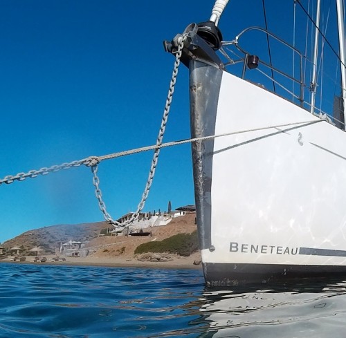 Ist der 2.Anker eingefahren, lasse ich den Hauptanker fallen und hole die extra Leine ein. Lässt sich der Anker nicht einfahren, also fasst er nicht, nehme ich ihn wieder ein und wiederhole das Manöver solange bis es klappt (oder ich diese Ankerposition aufgebe).