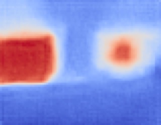 dass beide ordentlich warm werden (>40 Grad). Das ist in Ordnung so, es scheint die Sonne und sie machen Volllast. Bild Rechts: Die Batterie ist stark belastet, der Inverter zieht gut 100 A, auf dem Wärmebild erkennt man unten ein durkelroten Punkt! Das bedeutet ziemlich warm!