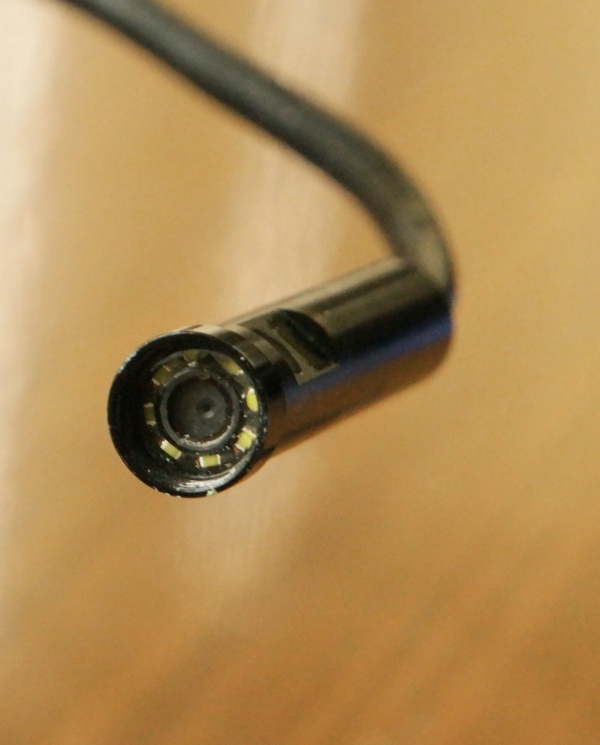 Anders das hier vorgestellte Endoskop, "Lightswim 1920". Es hätte vor ein paar Jahren noch ein Vermögen gekostet. Die Kamera an der Spitze eines fünf Meter langen Kabels hat eine gute Auflösung (siehe Fotos) und ist gleichzeitig mit starken Leuchtdioden kombiniert. Die Kamera ist lediglich 8 mm breit, so dass man sie auch durch kleine Öffnungen, Spalten in der Verkleidung oder Rohrleitungen einführen kann. Das Kabel zur Kamera ist nicht starr, sondern biegsam und hält eine vorher manipulierte leichte Biegung bis zur Kamera einigermaßen stabil.