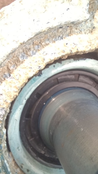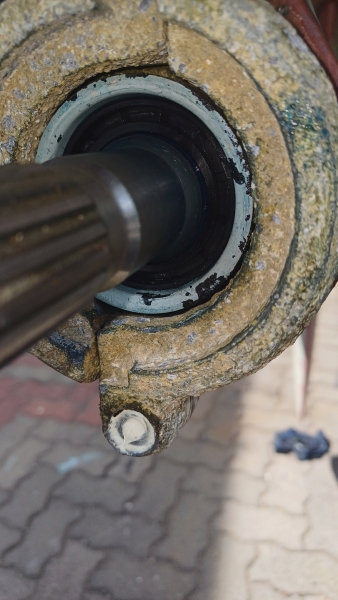 Jetzt der eigentliche Trick. Der Saildrive-Deckel, der auf der Innenseite der Simmerringe angebracht ist, hat auf der Außenseite eine Schulter für die Anode. Zufall oder Glück, der Innendurchmesser dieser Schulter hat dasselbe Maß wie das Außenmaß der Simmerringe. Die Welle ist ein wenig verjüngt. Auf jeden Fall fand ich in Kürze auf Langkawi einen passenden Simmerring und habe diesen nun dritten Simmerring auf der Außenseite montiert als Opfer gegen Fischleinen, Netze, Plastikmüll, und auch Elektrolyse, damit dieser beschädigt wird und nicht die inneren des Saildrives.