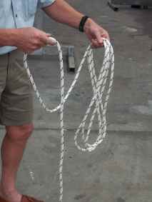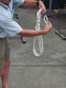 Die Leine wird in gleichmäßigen Buchten aufgeschossen.