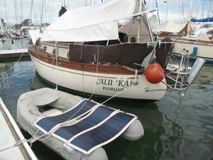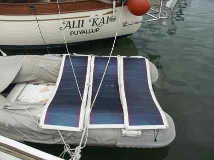 Ankerplatz die Solarpaneele im Beiboot ausgelegt werden, dann kann an sonnigen